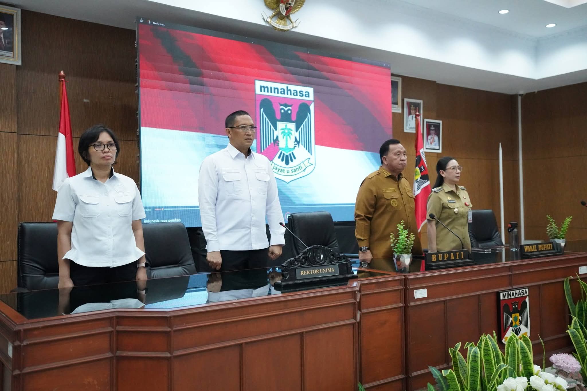 Momentum tersebut turut dihadiri Rektor Universitas Negeri Manado, Wakil Rektor III Bidang Kemahasiswaan Unima, para pimpinan fakultas, serta jajaran Pemerintah Kabupaten Minahasa, yang secara simbolik menandai konsolidasi kekuatan antara pemerintah daerah dan institusi akademik dalam membangun fondasi pembangunan Minahasa yang berdaya saing tinggi.