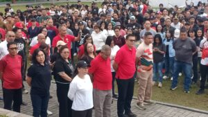 MINAHASA — Dalam denyut pengabdian yang terus bertransformasi menuju tata pemerintahan yang berdisiplin, beretika, dan berbudaya lingkungan, Bupati Minahasa, Robby Dondokambey, S.Si, MAP, bersama Wakil Bupati Vanda Sarundajang, S.S, memimpin Apel Kerja Bakti di Lapangan Dr. Sam Ratulangi Tondano, Taman God Bless Minahasa, pada Jumat (10/10/2025).